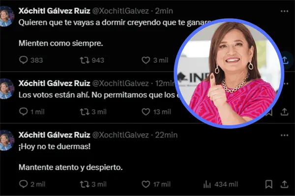 «¡Hoy no te duermas! Mantente atento y despierto», escribió la candidata de la Coalición «Fuerza y Corazón por México» a la Presidencia de la República en su cuenta oficial de X.