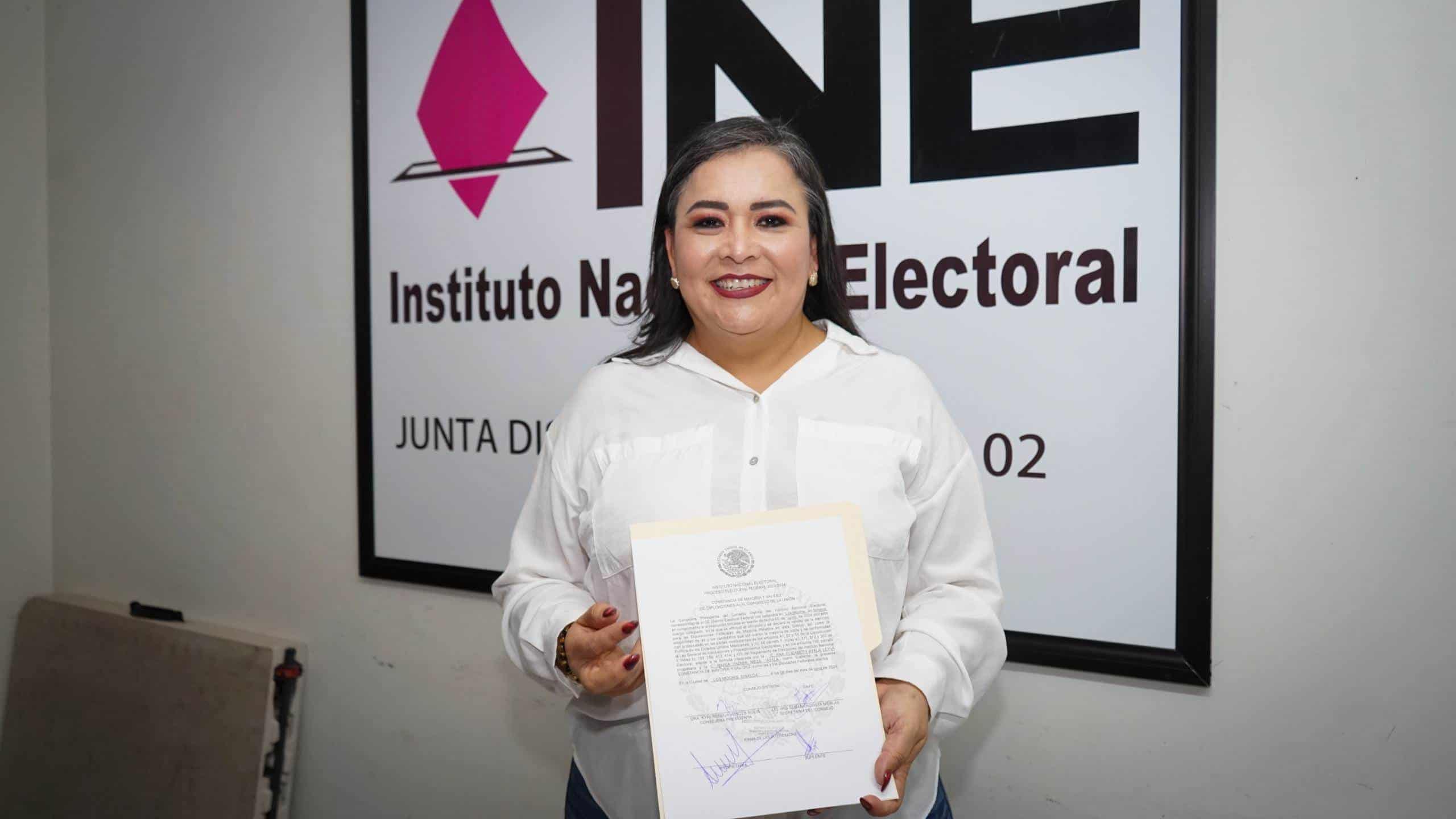 Ana Ayala recibió la constancia de mayoría de manos de la Doctora Kiry Rebeca Vences Solís, presidenta de esta Junta Distrital 02.