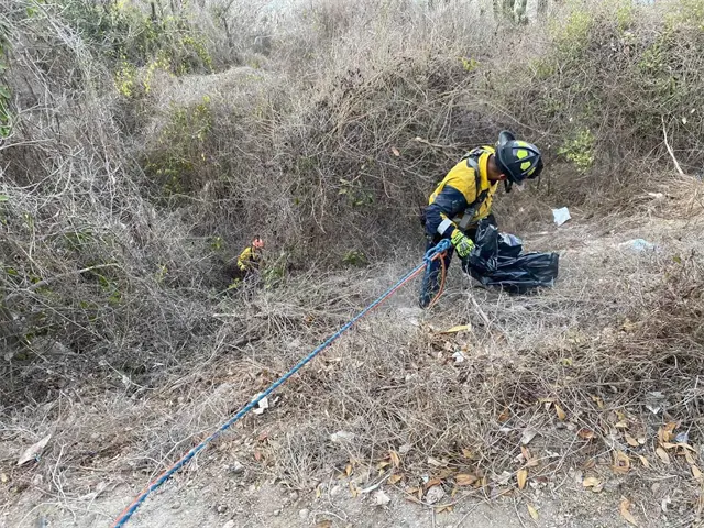En la tarea de conservar la naturaleza, los elementos que participaron recolectaron una gran cantidad de basura que se encontraba en lugares peligrosos utilizando equipo de seguridad para hacer el trabajo.
