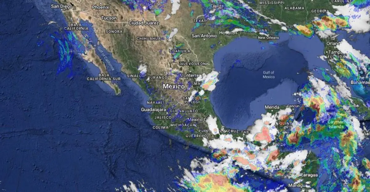 Por su parte, un centro de baja presión sobre la Península de Yucatán en combinación con un canal de baja presión sobre el sureste de México y con la vaguada monzónica extendida muy próxima a las costas del Pacífico Sur Mexicano, producirán lluvias muy fuertes a puntuales intensas acompañadas de descargas eléctricas y posible caída de granizo en las mencionadas regiones, así como lluvias puntuales fuertes en Guerrero.