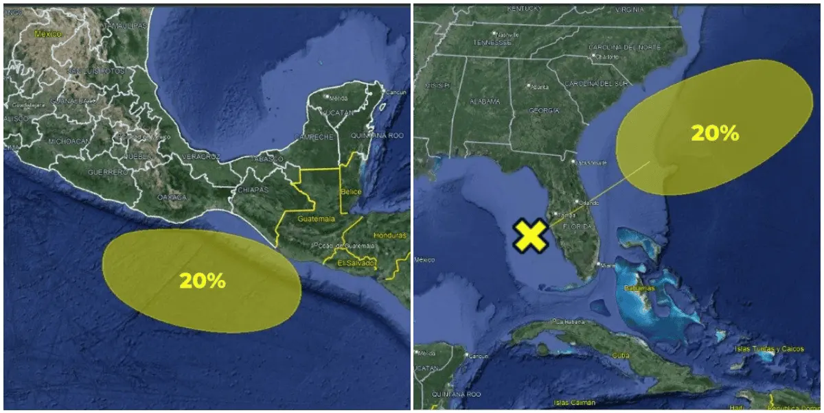 Además, también se mantiene vigilada otra zona de baja presión, ubicada frente al Golfo de México.