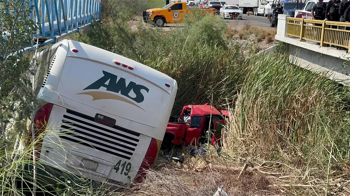 - El accidente, ocurrido en el ejido Chihuahuita en la sindicatura Villa Gustavo Díaz Ordaz, mejor conocida como El Carrizo, involucró a un autobús de la línea Norte de Sinaloa y una camioneta Ranger.