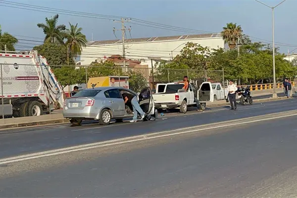 Una doble colisión con afectación en varios vehículos se registró la tarde de este jueves en la carretera México 15, a la altura del Fovissste Esperanza en el puerto de Mazatlán.