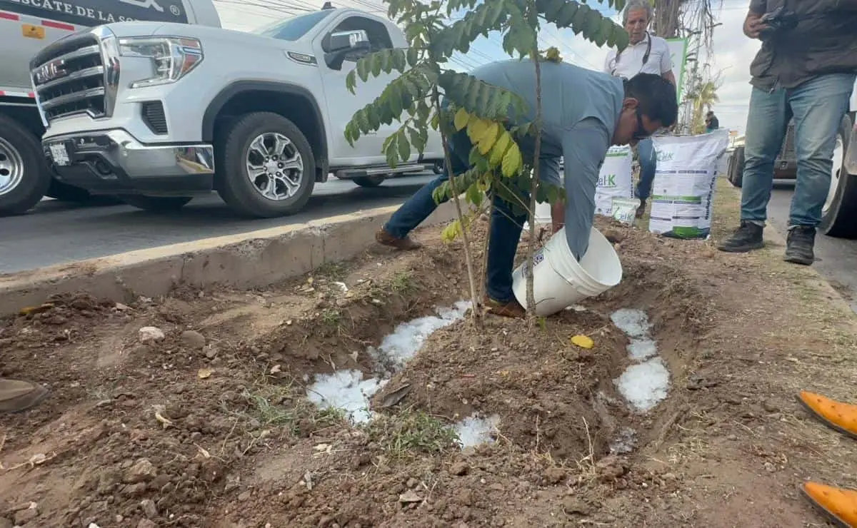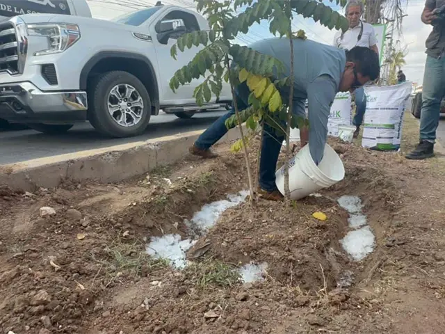 - Ana Rocío García Duarte, una de las socias de la empresa señaló que este producto es una donación para todo el Bulevar Macario Gaxiola y esperan poder llegar a un acuerdo para aplicar en toda la ciudad de Los Mochis y evitar que los árboles mueran a causa del intenso calor y la sequía.