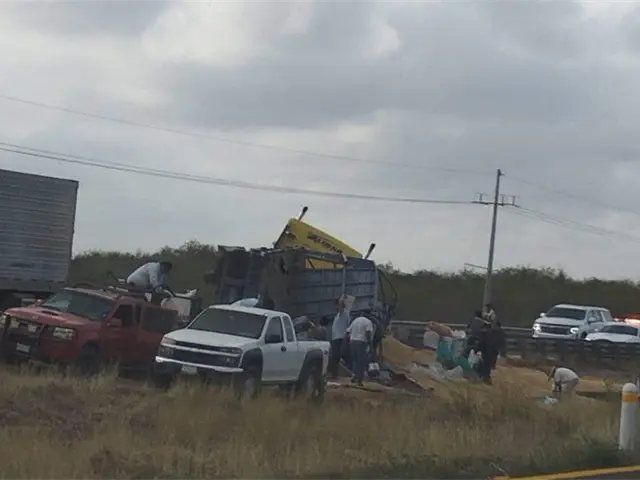 Vuelca camión cargado con granos sobre la Maxipista