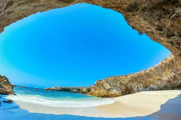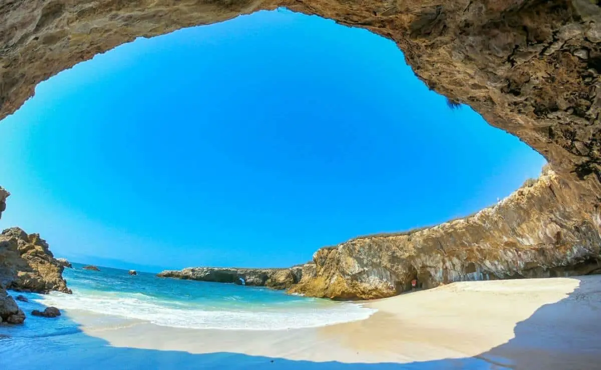 Para acceder a Playa Escondida en Nayarit es necesario hacerlo a través de un túnel submarino estrecho durante la marea baja, una playa que ofrece a los visitantes una experiencia casi surrealista y exclusiva, un refugio que incluso ha sido llamado «playa del amor» debido a que es un lugar escondido y mágico bañado por las aguas del Pacífico mexicano.