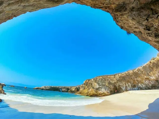 Ubicada en las Islas Marietas, en Nayarit México, Playa Escondida es un lugar mágico, un destino imperdible que ofrece un peculiar paisaje al encontrarse dentro de una especie de cueva con techo abierto al cielo, el cual está rodeada de agua cristalina y formaciones rocosas impresionantes.