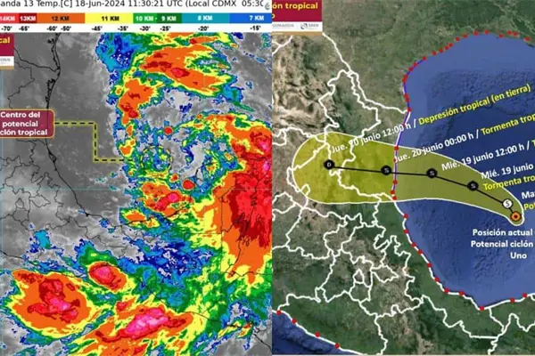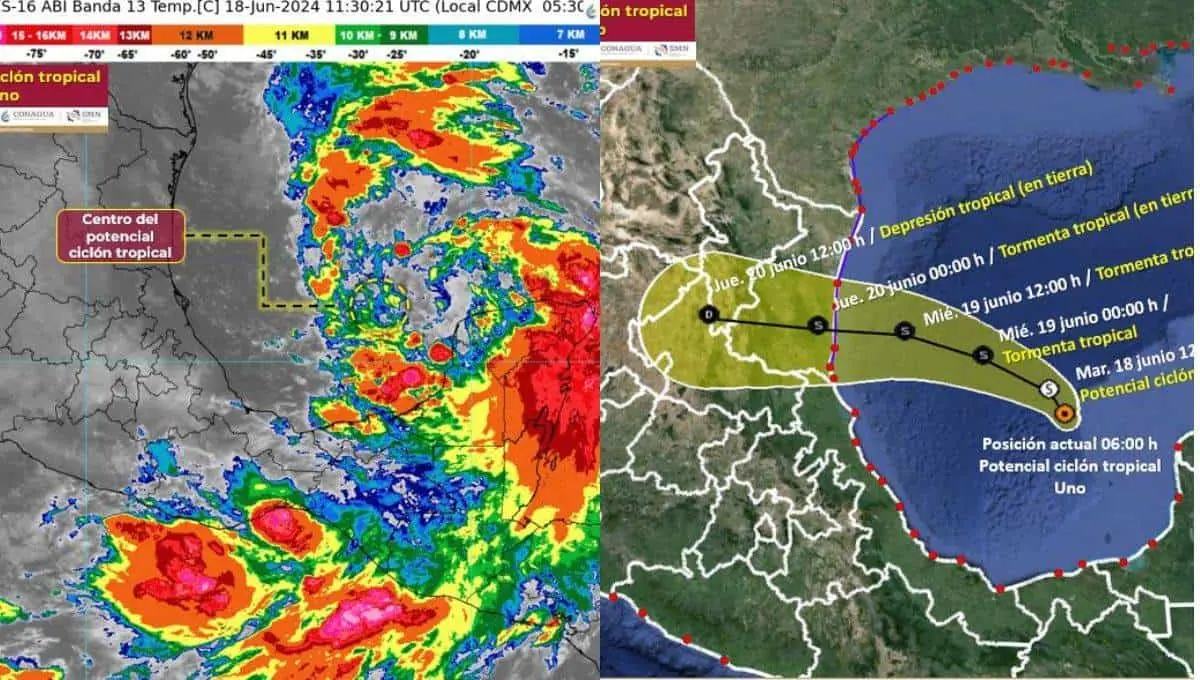 La mañana de este martes, 18 de junio, el Servicio Meteorológico Nacional de la Conagua acaba de informar que el potencial ciclón tropical Uno se localiza sobre el suroeste del Golfo de México y su amplia circulación producirá lluvias puntuales intensas en distintos estados de la república, ¿Afectará a Sinaloa?