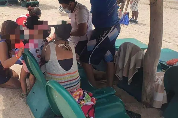 Previo al rescate, el elemento en resguardo de la zona apreció a la mujer pidiendo auxilio, por lo que de inmediato se introdujo al mar para mantenerla a flote hasta llevarla a la orilla, donde se le brindó valoración médica por un padecimiento de asma.