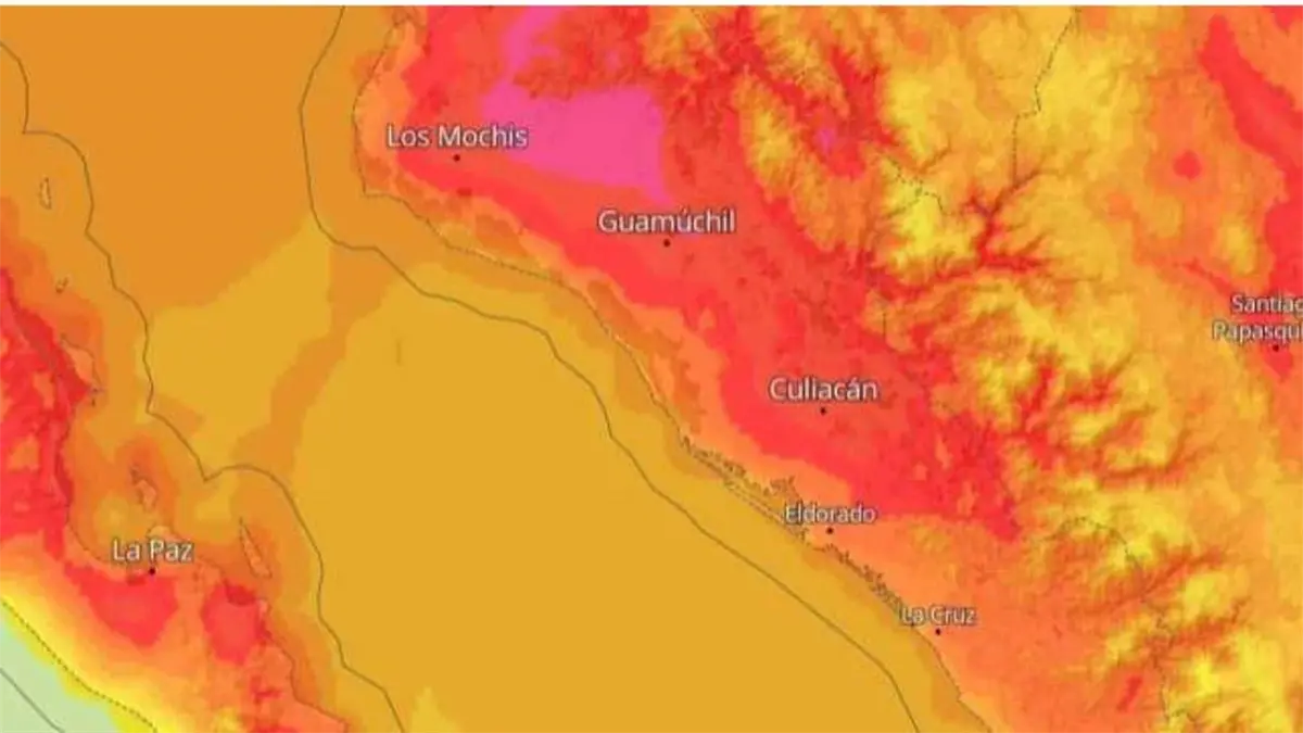 «Las temperaturas a la sobra muy altas hasta de 41-42  grados en la zona de Choix, Sinaloa, El Fuerte, Resto de zona norte de 36-40 grados, centro 38 y sur de 32 grados como maximas», añadió.
