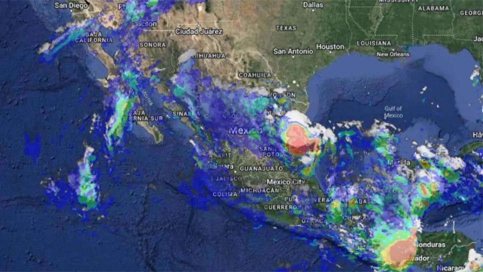 Para este domingo, la vaguada monzónica que se extenderá sobre el sureste y sur del territorio nacional y una zona de baja presión con probabilidad de desarrollo ciclónico (o posible ciclón tropical) sobre el occidente del Golfo de México, que continuará desplazándose hacia las costas de Tamaulipas y Veracruz en interacción con inestabilidad atmosférica en altura, ocasionarán lluvias puntuales torrenciales en Tamaulipas, Nuevo León, San Luis Potosí y Veracruz; y puntuales muy fuertes a intensas sobre estados del noreste, oriente, sur y sureste del país, además de la Península de Yucatán.