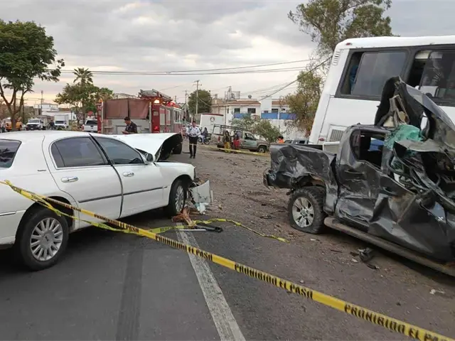 Al pasar un conocido panteón ubicado a la salida sur de la ciudad, el chofer del transporte perdió el control de la unidad y luego de brincarse el camellón central derribó una palmera y se estrelló de frente contra un automóvil Lincoln Town Car blanco y una camioneta Toyota Hilux gris que circulaban sobre los carriles contrarios con dirección hacia el norte.