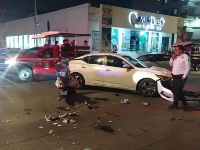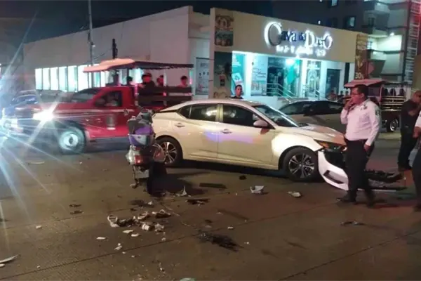 La motociclista chocó contra la defensa del automóvil para luego salir proyectada y caer al pavimento con heridas de consideración al ser embestida por la conductora residente del fraccionamiento Playa Sur.