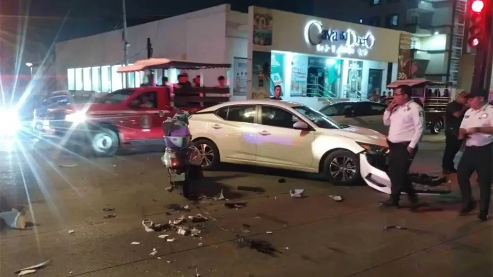 Por cruzarse en rojo, automóvil embiste a mujer en motoneta por el malecón de Mazatlán