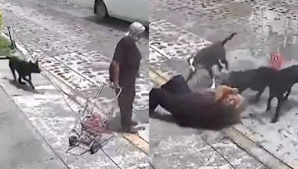 Las redes explotaron luego de que se difundiera un video de unas cámaras de seguridad en las que se aprecia a una señora de la tercera edad siendo atacada por una jauría de perros, quienes la derribaron y posteriormente comenzaron a morderla y arrastrarla por el suelo.