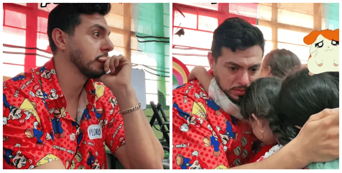 A través de su cuenta de TikTok (@maestromielpedrocota), el docente compartió un video de poco más de dos minutos y medio en el que se observa cómo se despide de sus alumnos de primer grado y el sentimiento le gana, al igual que a los pequeños, quienes lo rodean llorando y lo colman de abrazos.