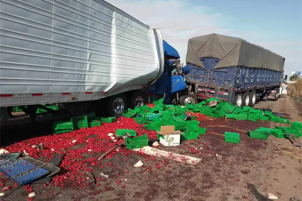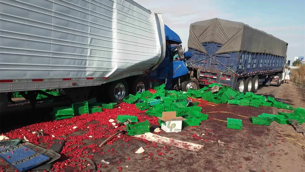 La unidad contra la cual colisionó por razones desconocidas fue un tractocamión Volvo color azul, modelo 2013, con caja refrigerada, que transportaba fresas y era conducido por Tomás «N».