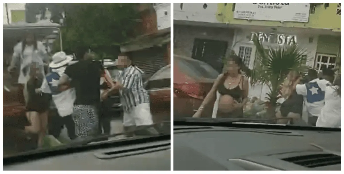 En el video se ve cómo un grupo de mujeres que acompañaban a los varones, posiblemente sus parejas, entre ellas una mujer en proceso de gestación, intentan detener el pleito, llevándose algunos golpes también ellas, por lo que la mujer embarazada opta por apartarse.