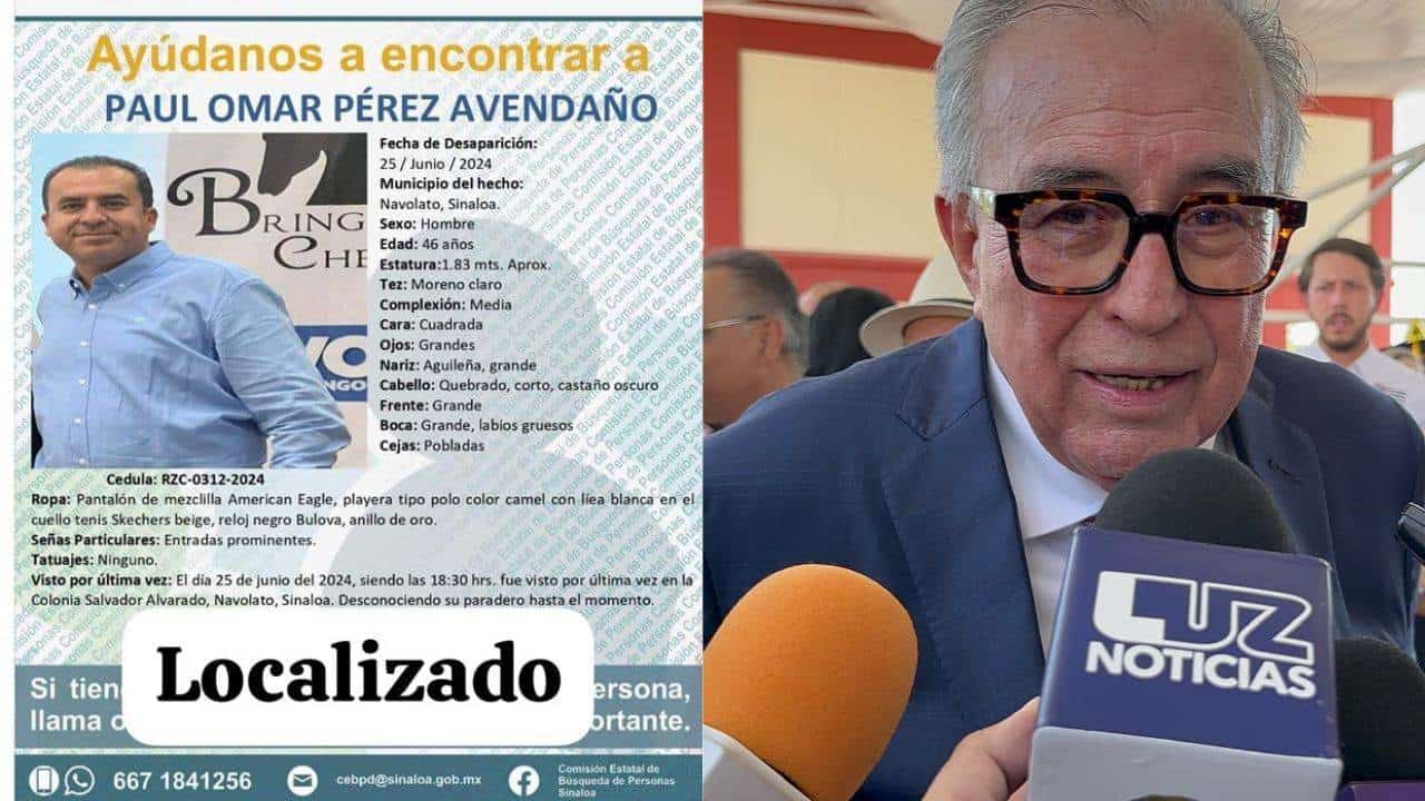 - En su reciente visita al municipio de El Fuerte este jueves, el gobernador del Estado Rubén Rocha Moya, comentó que el profesor Paúl Omar Pérez Avendaño, de 46 años de edad quién fue «levantado» un grupo armado de la tarde del pasado día 25 de Julio, de su domicilio en la colonia Salvador Alvarado del municipio en mención, no presenta lesiones y afectaciones en su persona.