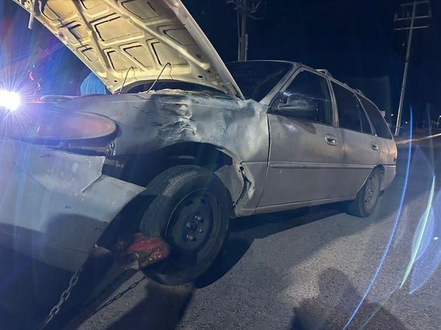 Al llegar al cruce con el entronque de la carretera al Benito Juárez, chocaron contra el guardafango de un vehículo de la marca Ford, línea Escort SE, de color gris con placas de circulación VHV-905-D del Estado de Sinaloa.