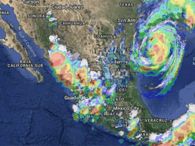 «La celda de tormenta que se ha formado esta tarde sobre Sinaloa de Leyva y continúa desplazándose al oeste en dirección a la costa. El radar indica lluvias fuertes a intensas con probable caída de granizo al oeste del municipio», informó Protección Civil.