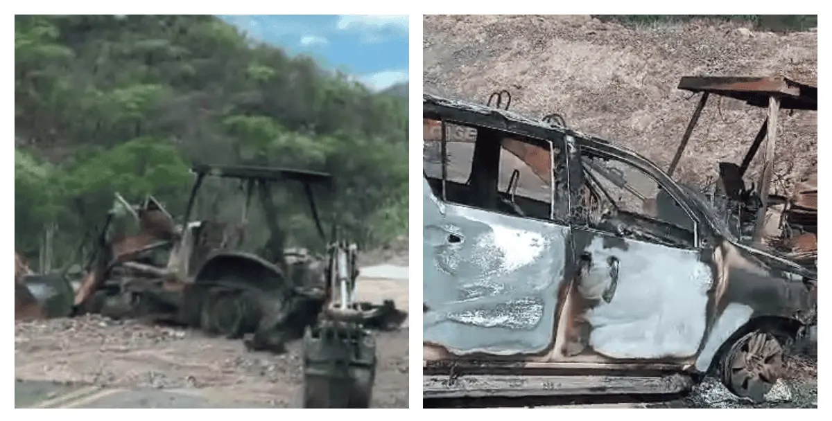 Se dice que durante los enfrentamientos, varias unidades, entre ellas una retroexcavadora, fueron quemadas por los delincuentes para bloquear las carreteras y evitar el paso de los militares hacia dicha zona serrana.