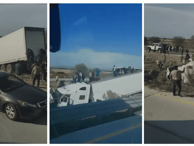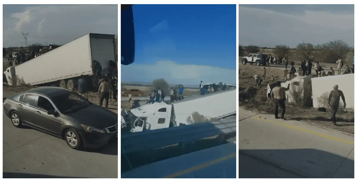 En videos que circulan en redes sociales se observa a las víctimas del accidente tratar de salir de la caja del tráiler, donde viajaban con dirección a la frontera norte del país.