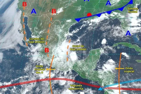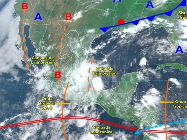 Además, este fenómeno interactuará con la vaguada monzónica que está localizada cerca de las costas del Pacífico sur por lo que se esperan lluvias puntuales en Oaxaca y Chiapas.