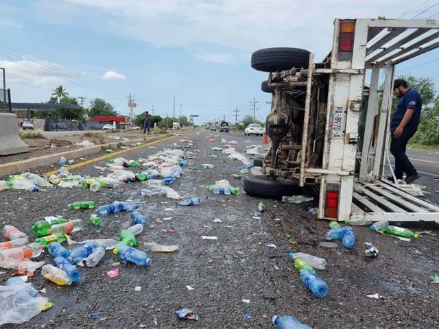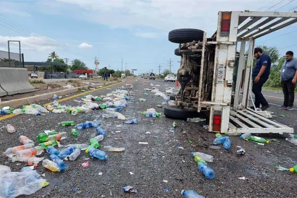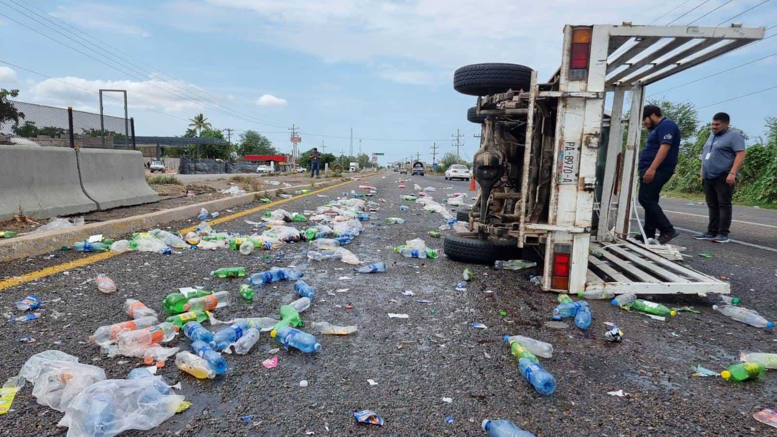 Una camioneta de una empresa refresquera terminó volcada a la altura del ejido Canan de la sindicatura de Costa Rica de Culiacán y debido a que había producto en buen estado, algunas personas aprovecharon para realizar actos de rapiña.