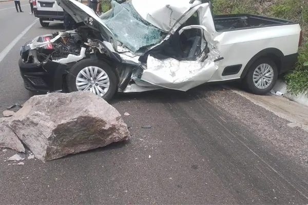 Un accidente tipo de deslave de cerro, es el que se registró cerca del mediodía de este sábado en el kilómetro 162+380 de la carretera Mazatlán-Durango, en el que resultó una persona prensada y que minutos después perdió la vida dentro del vehículo.