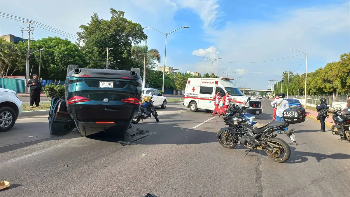 A pesar de que la unidad quedó con las llantas hacia arriba no hubo personas lesionadas.