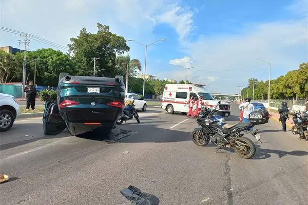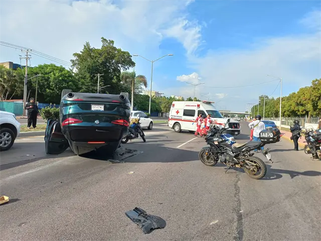 Una camioneta de lujo y de modelo reciente terminó volcada sobre el bulevar Pedro Infante, en el sector del Tres Ríos de Culiacán.
