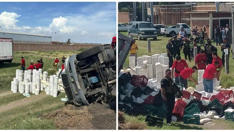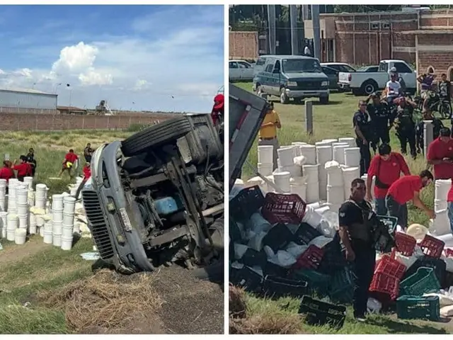 Vuelca camión cargado con queso sobre la carretera México 15, en Guasave