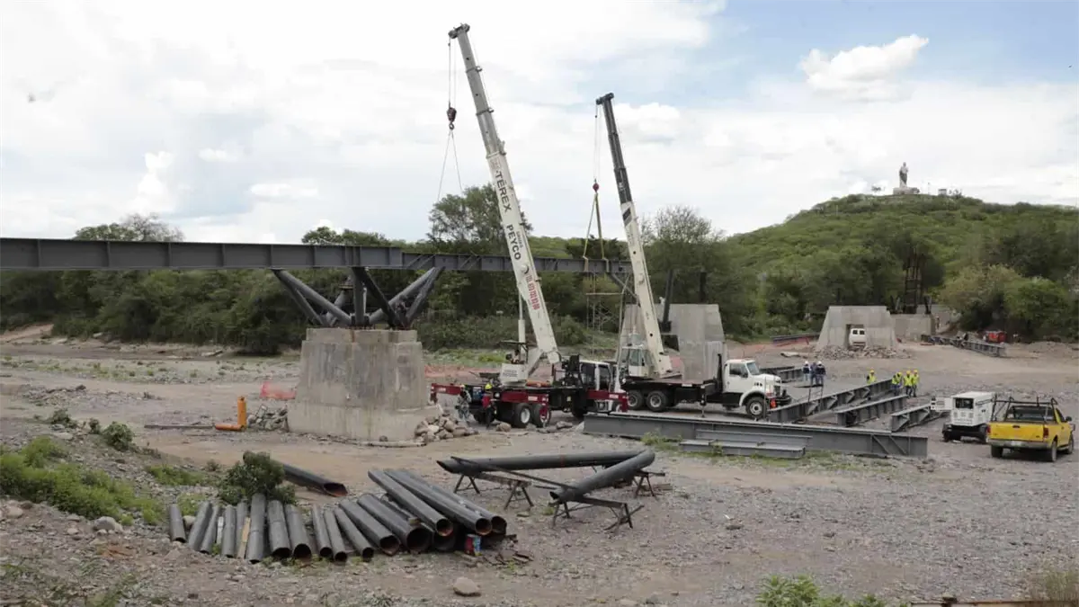 En la cabecera municipal, el gobernador supervisó la construcción del puente bimodal que se encuentra sobre el malecón de Badiraguato, que conectará el centro histórico con la comunidad La Banda del Río, prevista a inaugurarse en septiembre.