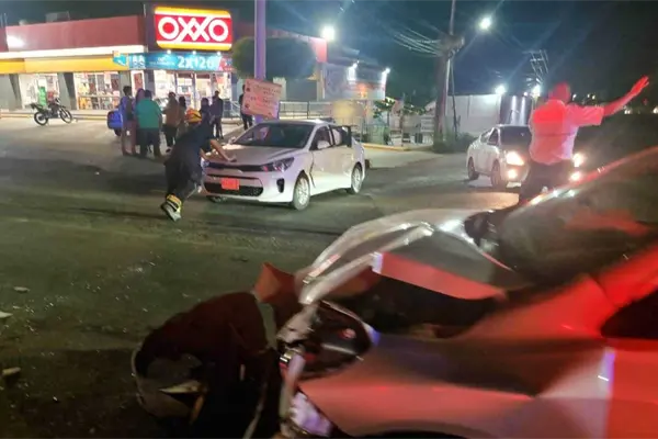Las unidades que participaron en el accidente son un vehículo Kia de color blanco y un Nissan Versa.