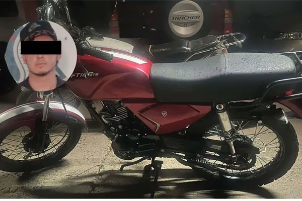 Al pasarse el semáforo, los elementos le marcaron el alto para que detuviera la marcha y al hacerlo metros adelante, los policías solicitaron datos de la motocicleta a C4, en donde les respondieron que contaba con reporte de robo desde el 22 de junio de 2024 en el fraccionamiento Virreyes.