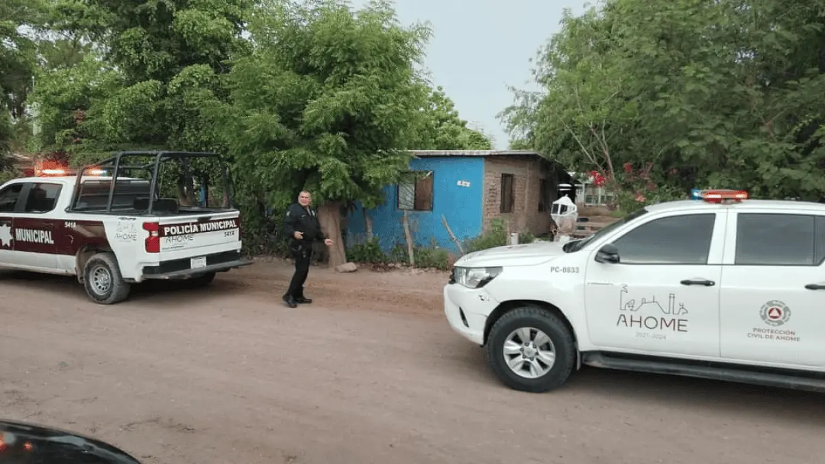 Agentes de la Secretaría de Seguridad y Protección Ciudadana de Ahome asignados a la sindicatura de la Higuera de Zaragoza, rescataron a una familia que estaba siendo atacada por un enjambre de abejas dentro de su hogar.