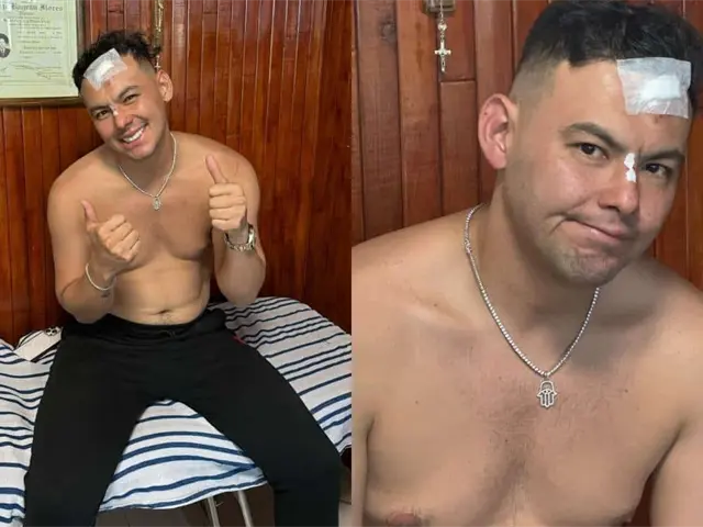 En las fotos, El Yaki aparece sonriente pese a traer la cara ensangrentada y con unas cuantas puntadas en la parte superior de la frente.
