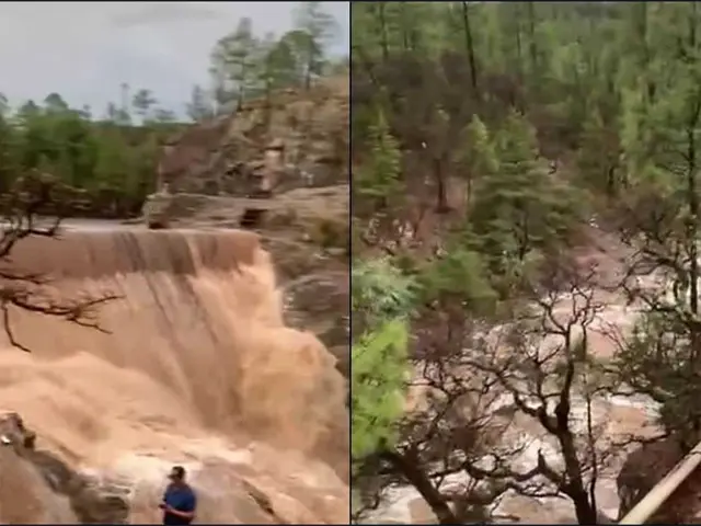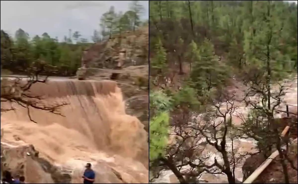 En un video compartido en la página de redes sociales «Esto es Sinaloa» se muestra como el agua en Bahuichivo, Chihuahua, fluye cuesta abajo, causando la sorpresa de los que se encuentran cerca del lugar.