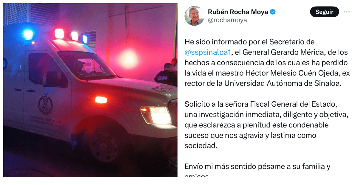 Por su parte, Sara Bruna Quiñonez Estrada, Fiscal General de Sinaloa, aseguró que la FGE actuó de inmediato para realizar las investigaciones correspondientes que permitan esclarecer el asesinato de Héctor Melesio Cuén Ojeda.