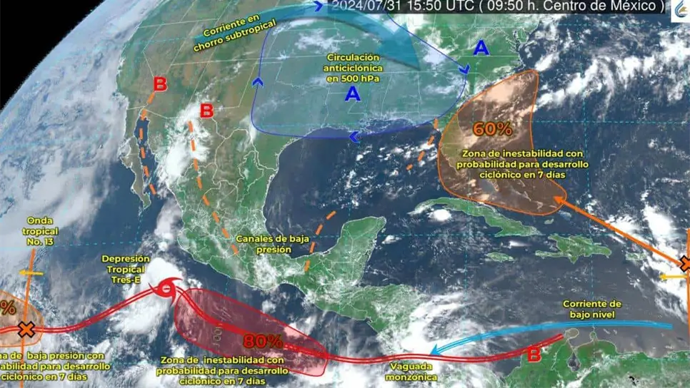 Un nuevo fenómeno metereológico con potencial ciclónico se está formando en el Océano Pacifico y su pronóstico indica que a partir del 8 de agosto se clasifique como huracán categoría 4, el cual llevaría por nombre «Daniel», mismo que dejará remanentes de lluvias en Sinaloa.