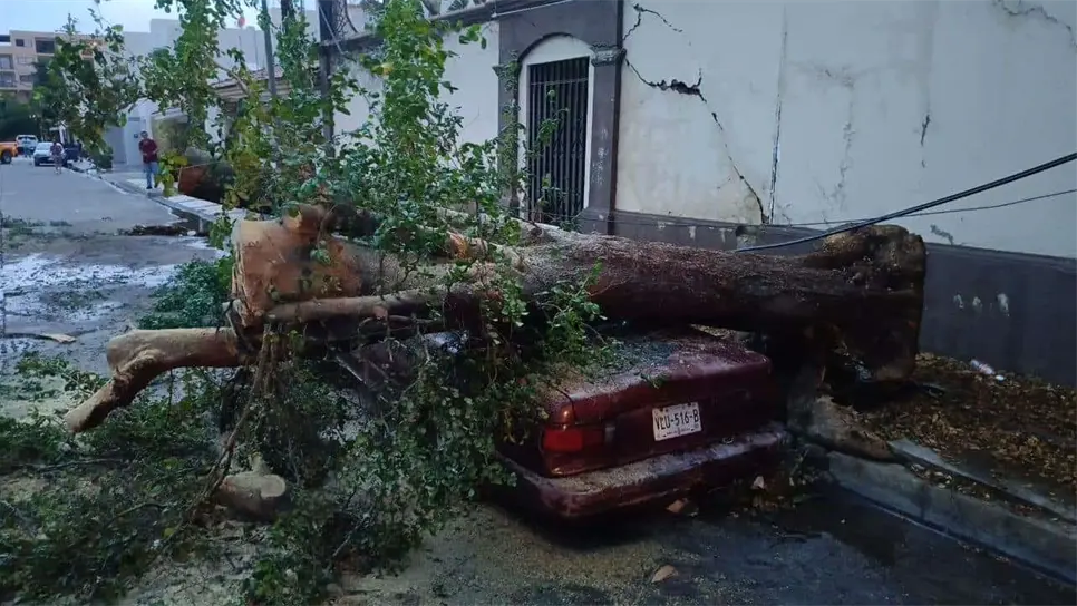El personal Protección Civil señaló que el primer hecho se dio por la calle Emigdio Flores y Pino en la colonia Chapultepec. Esto cuando un árbol le cayó a la parte de atrás de un vehículo Nissan Tsuru de color tinto.