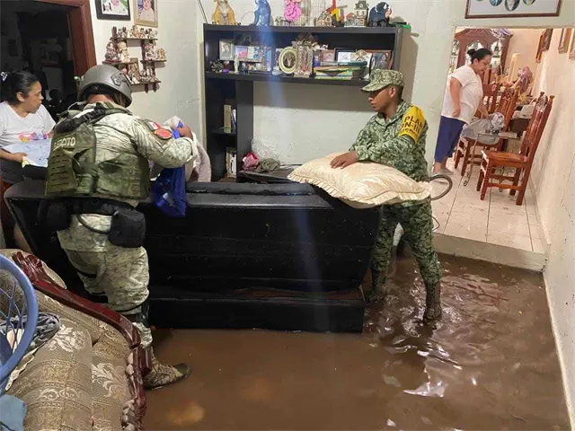 La ciudadanía recibió el apoyo del Ejército Mexicano en sus hogares, quienes les ayudaron a sacar el agua acumulada y remover los muebles afectados.