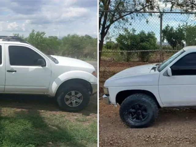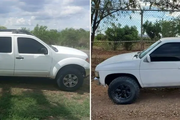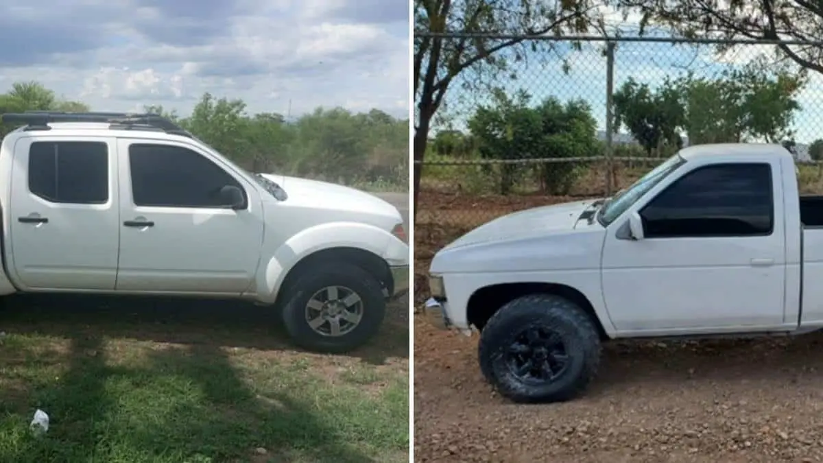 La primera es una camioneta Nissan blanca modelo 1991 que se localizó sobre el camino contiguo a la pensión Hidromax a escasos metros de la vialidad conocida como La Costerita el cual al ser revisado resultó con reporte de robo el 10 de junio de 2015.