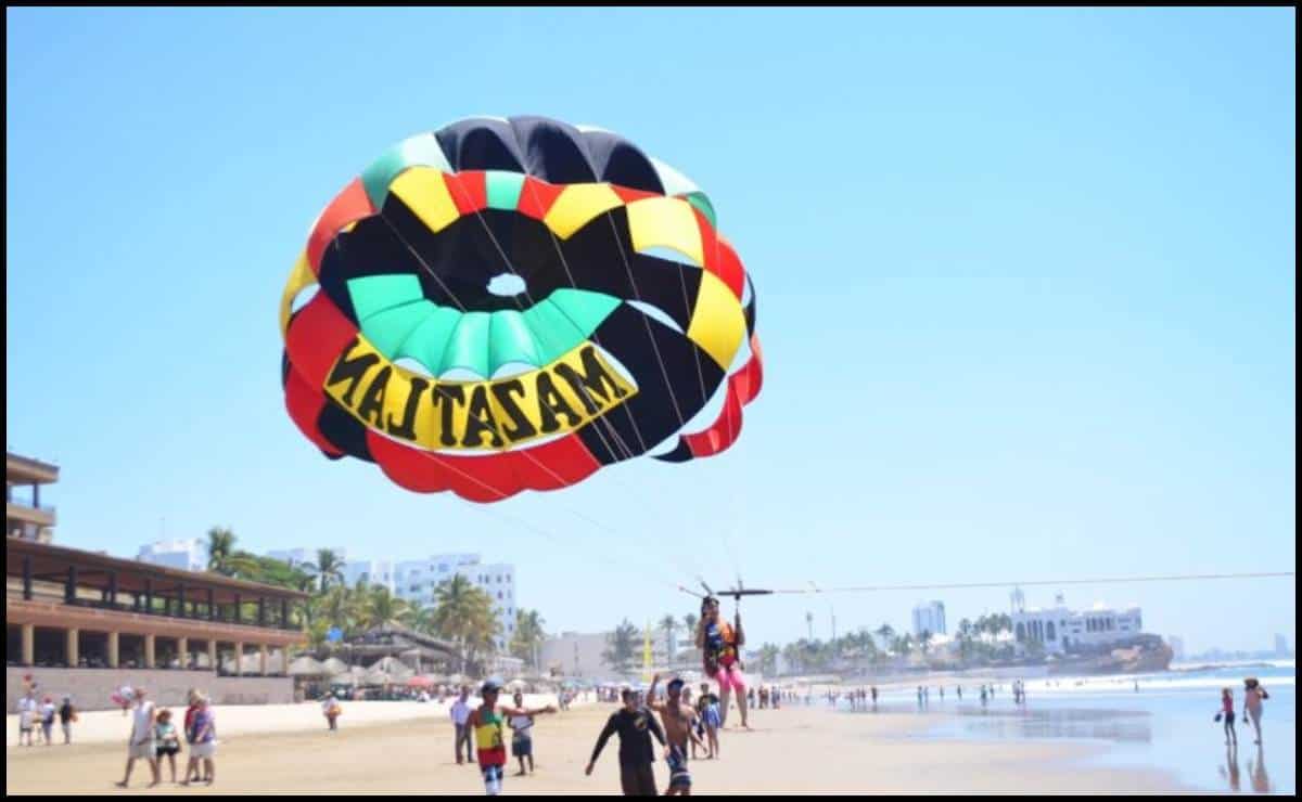 El paseo en parachute se ha convertido en una de las actividades turísticas más llamativas en las costas de Mazatlán, esta emocionante experiencia permite a los turistas volar sobre el mar, a través de un paracaídas que es jalado por una lancha, lo que resulta en vistas impresionantes de la costa y sus islas.