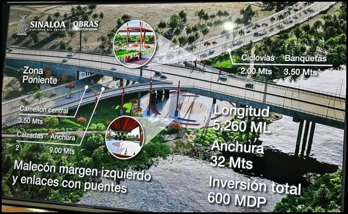El proyecto del malecón margen izquierdo «mega malecón» tendrá un recorrido de 5 kilómetros que incluye gasas que se unirán en diferentes zonas de Culiacán