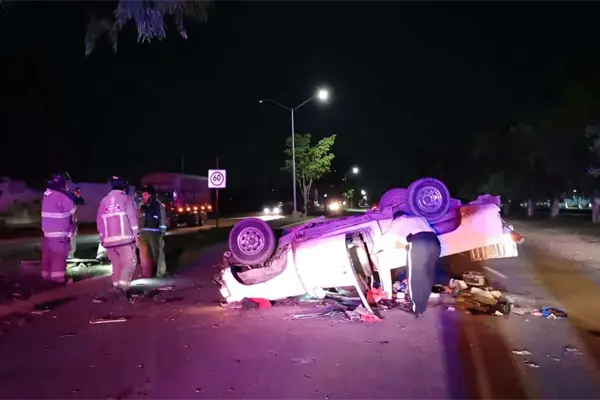 Según información recabada en el lugar del accidente, el conductor de una camioneta Nissan de color blanco, perdió el control del volante mientras se desplazaba hacia el sur rumbo al puerto, lo que provocó que se subiera a la guarnición y derivado de eso se impactó contra un árbol, y luego quedó volcado con las cuatro llantas hacia arriba.