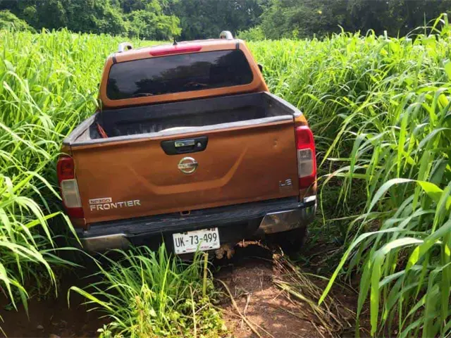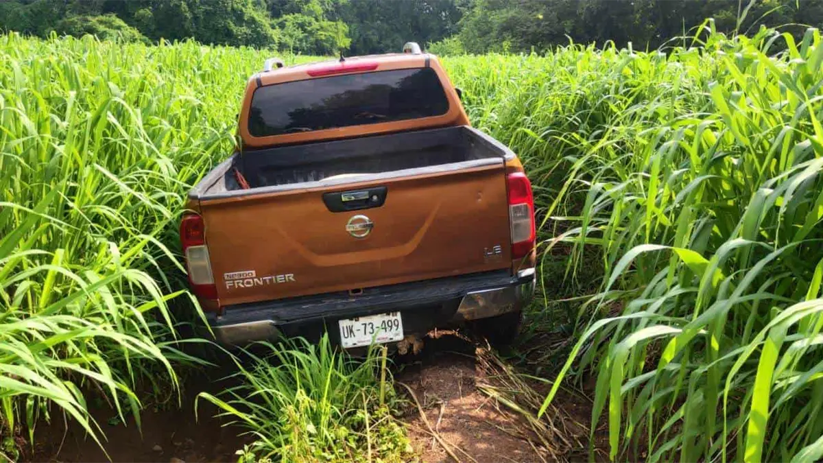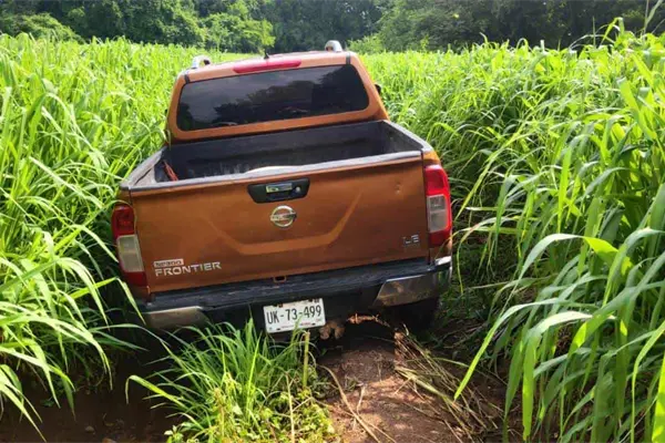 Se indicó que la camioneta estaba entre un predio de cultivo.