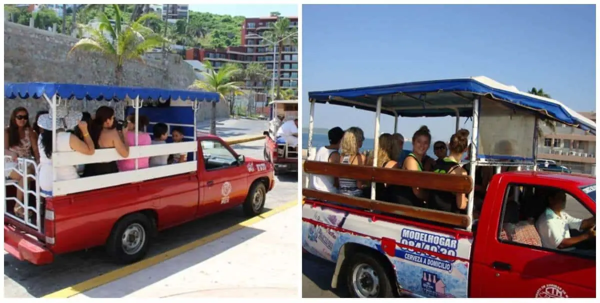 Las aurigas son camionetas que se han convertido en un símbolo de la ciudad, son una opción perfecta para explorar la bahía porteña, capaces de transportar hasta 10 personas, estos vehículos son la elección ideal para grupos y familias que desean disfrutar de un recorrido panorámico por el malecón.