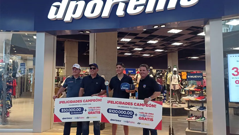 “Hoy nos toca a nosotros reconocerte y reconocerlos a ambos por el gran logro. Vamos a dar un pequeño reconocimiento para Marco y para Radamés. Este es un reconocimiento para que utilicen los productos de calidad mundial que en Dportenis siempre hemos manejado”, señaló.